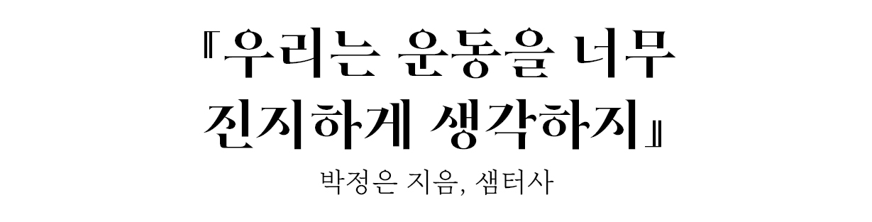 출간 이후 제목에 대한 좋은 피드백을 피드백을 많이 받았는데요, 이 책 역시 한눈에 제목이 들어오더라고요. 운동하면 좋은 걸 알고도 못하는 이유는 우리가 운동을 너무 진지하게 생각해서는 아닐까요? 갈수록 여러 매체를 통해 운동 유튜버나 전문가를 접할 기회가 많아지고, 운동을 본격적으로 하는 사람들이 이런저런 경로를 통해 더 쉽게 보여서 그런 게 아닐까 생각합니다. 이 책은 10년차 트레이너가 운동과 함께 사는 법을 이야기하는 에세이인데요, '아마추어의 운동 목표는 운동장 바깥에 있다'는 하주원 선생님의 메시지와 맞닿아 있다고 느껴 골라보았어요. 시간도 기력도 부족한 우리 생활인은 운동으로 거창한 성과를 얻을 필요도, 운동 그 자체를 목표로 삼을 필요도 없습니다. 그보다는 일상을 조금 더 쾌적하게 만들기 위한 튼튼한 지지대, 좋은 친구로 운동을 여긴다면 좋을 거예요. 이 책에서 소개하는 운동 습관을 만드는 방법도 의외로 '덤벨 구매하기' 같은 것이 아닙니다. '블루라이트를 벗어나 햇빛 샤워하기', '방 청소하며 스트레칭 하기', '휴대폰을 꺼두는 질 좋은 휴식시간 늘리기'처럼 아주 간단한 시도만으로도 가능하다고 해요. |