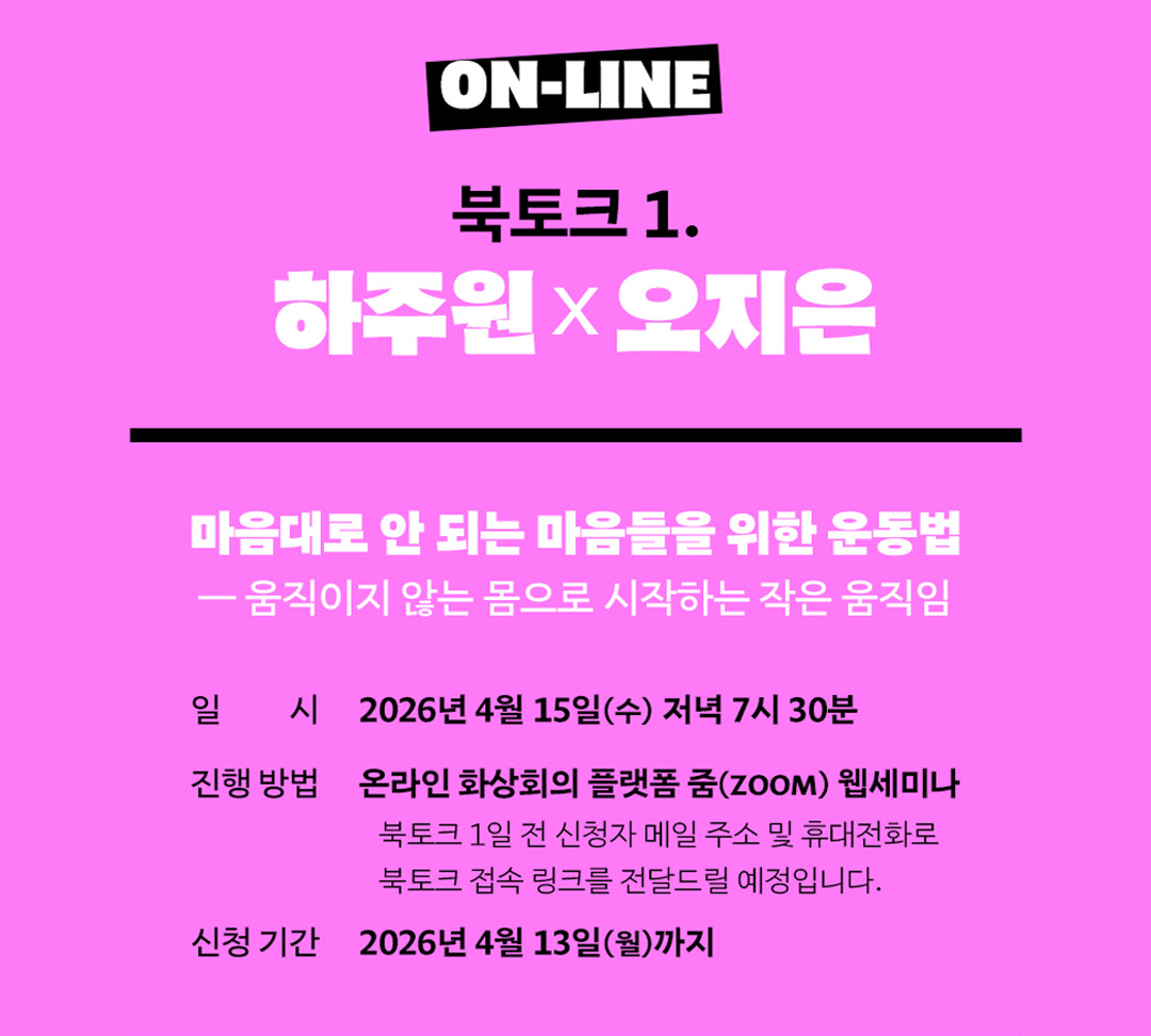 1️⃣ 온라인: 하주원×오지은 마음대로 안 되는 마음들을 위한 운동법 ― 움직이지 않는 몸으로 시작하는 작은 움직임