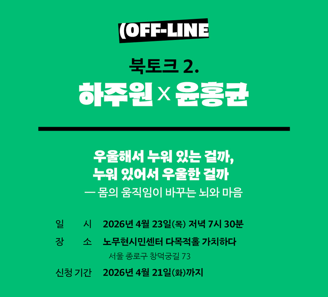 2️⃣ 오프라인: 하주원×윤홍균 우울해서 누워 있는 걸까, 누워 있어서 우울한 걸까 ― 몸의 움직임이 바뀌는 뇌와 마음